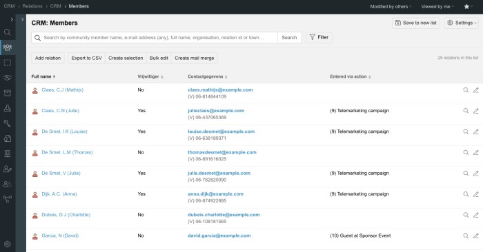With the powerful filters in Procurios CRM, the possibilities are endless: roles, locations, actions, campaigns, subscriptions, custom fields – you name it.
