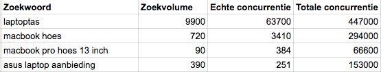 Schrijf ook het aantal concurrenten per zoekwoord in je excel lijst.