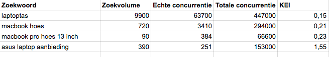 De KEi formule is als volgt: maandelijks zoekvolume / concurrenten = KEI
