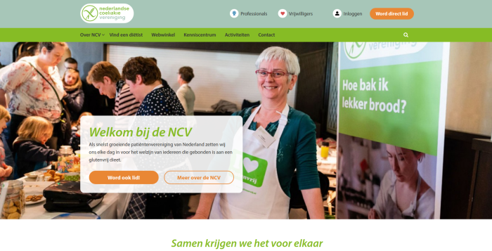 De NCV ontstond in 1974 als een typische voor/door-vereniging. “En dat is het eigenlijk nog steeds”, zegt Van Overveld. “Ons vrijwilligersbestand is heel groot, iedereen helpt elkaar. Zo organiseren we kinderkampen en bakworkshops, maar ook markten waar leveranciers hun glutenvrije producten aanbieden, voorlichtingsbijeenkomsten en bijvoorbeeld vorig jaar een uitgebreid glutenvrij buffet met kerst.”