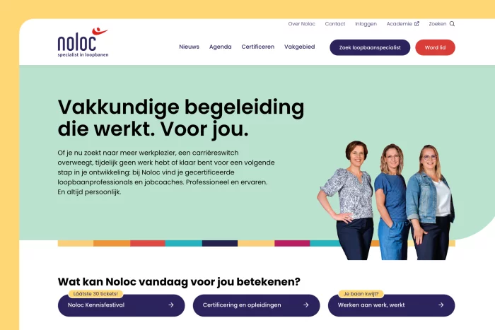 Noloc werkte met ons aan een overzichtelijke website die, door uitgebreid onderzoek, naadloos aansluit bij loopbaanprofessionals.