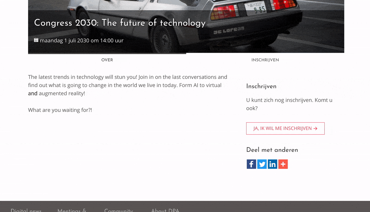 Gebruikers kunnen zich eenvoudig inschrijven voor evenementen en bijeenkomsten. Doordat gegevens zijn aan Meetings, onderdeel van het Procurios platform, verloopt alle vervolgcommunicatie volledig geautomatiseerd.