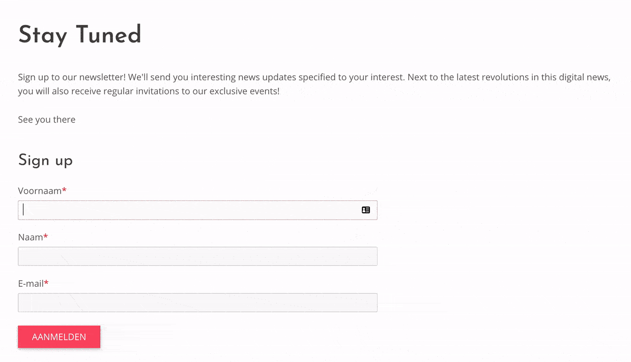 Laat nieuwe gebruikers zich eenvoudig registreren, bijvoorbeeld voor het ledenportaal. De gegevens komen automatisch in het CRM. Met een beveiligd wachtwoord kunnen gebruikers inloggen en hun data actueel houden.